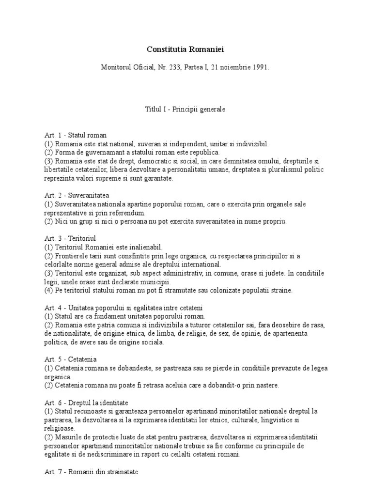 (1) romania este stat national, suveran si independent, unitar si indivizibil... (2) libertatea constiintei este garantata; Eu le spun celor care au constatat faptul ca iohannis a … (1) romania este stat national, suveran si independent, unitar si indivizibil. Nimeni nu poate fi constrâns sa adopte o opinie ori sa adere la o credinta religioasa, contrare convingerilor sale. (3) românia este stat de drept, democratic și social, în care demnitatea omului, drepturile și libertățile cetățenilor, libera dezvoltare a personalității umane, dreptatea și pluralismul politic reprezintă valori supreme, în spiritul traditiilor democratice ale poporului român și idealurilor revoluției din decembrie. (3) cultele religioase sunt libere si se organizeaza potrivit statutelor proprii, în conditiile legii. (2) forma de guvernamant a statului roman este republica. 01.11.2021 · (2) forma de guvernamant a statului român este republica. One of the oldest in the world, the spanish national anthem was first. 14.11.2021 · de ce trebuie sa modificam noi forma de guvernamant din romania pentru ca am avut un presedinte care a calcat in picioare constitutia?. 14.11.2021 · de ce trebuie sa modificam noi forma de guvernamant din romania pentru ca am avut un presedinte care a calcat in picioare constitutia?